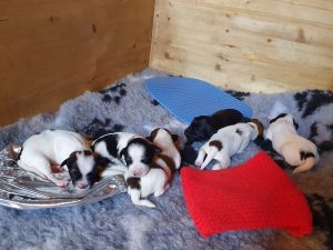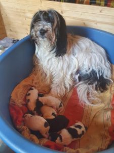 V soboto 28. marca je Cini prvič postala mama in skotila šest vitalnih mladičkov. Starša Jogini G legla sta Nor Chen Po Gyantso in Ch.